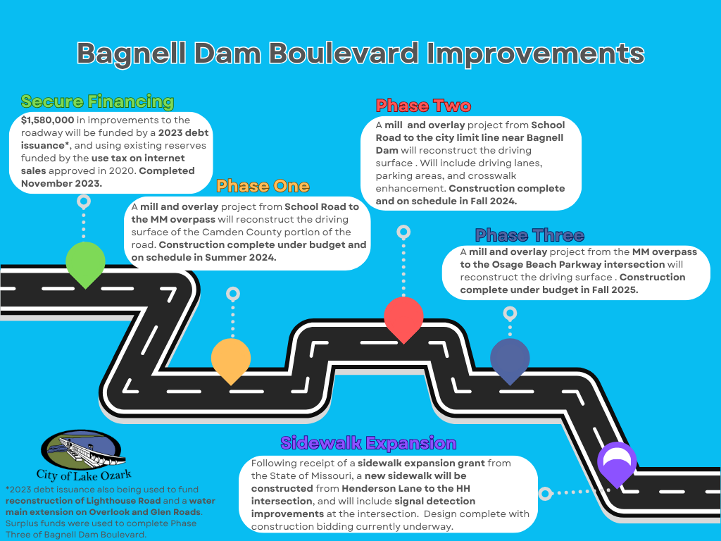 There have been many steps along the way for the City’s planned surface improvements and road enhancements to Bagnell Dam Boulevard, which began in the planning stages in 2023.