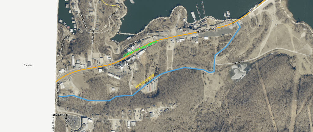 Location: Bagnell Dam Strip from School Road intersection to Bagnell Dam